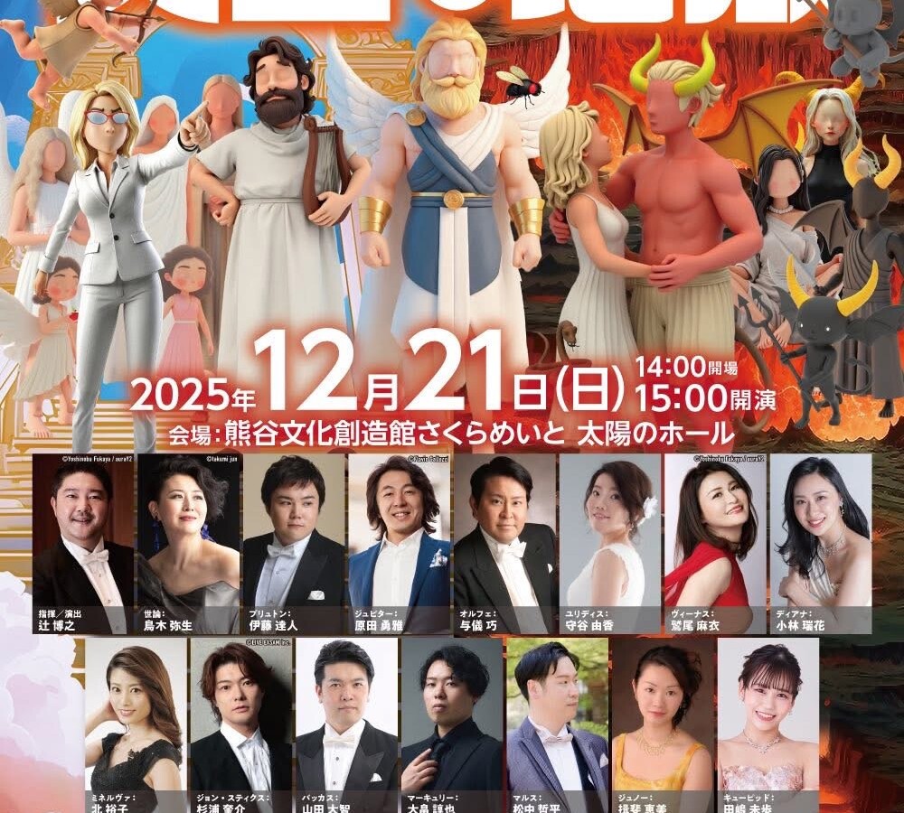 文化庁 劇場・音楽堂等における子供舞台芸術鑑賞体験支援事業採択事業熊谷市誕生20周年記念/埼玉県芸術文化祭2025協賛事業 MUSICALDA KUMAGAYA OPERA vol.5 J.オッフェンバック作曲喜歌劇『天国と地獄』全2幕/日本語訳詞上演 2025年12月21日(日)開場: 14:00 / 開...